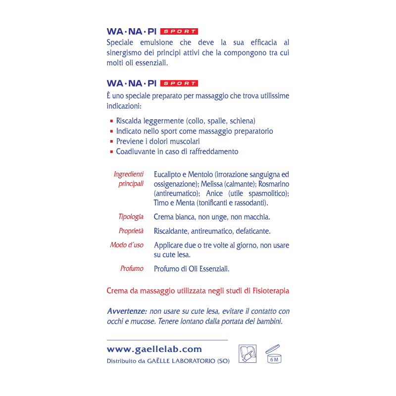 Wa-Na-Pi Sport è uno speciale preparato per massaggio che trova utilissime indicazioni: